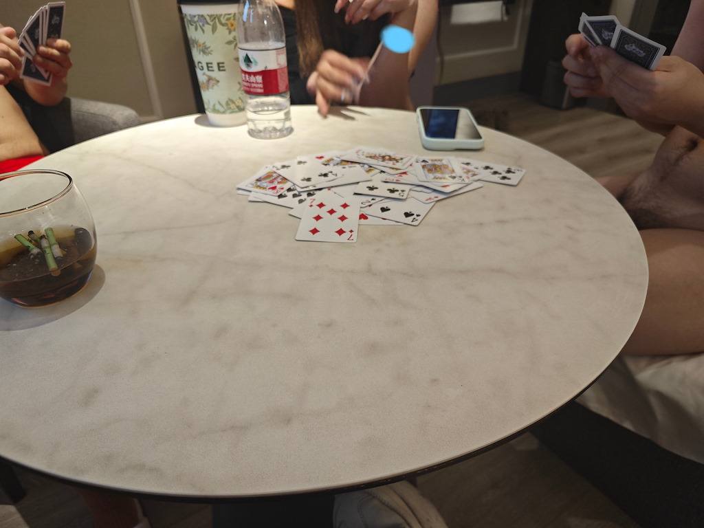没多久,1号和2号就“输光光”了,妹子原本也里外都光了,但由于耍赖一次,得以保留了最后的上衣。妹子的咸猪手开始伸向单男了。