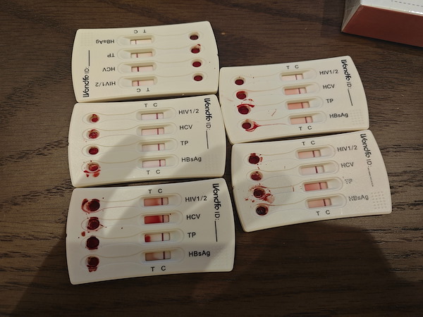 现场试纸检测,这里我说明一下,由于试纸检测的准确率略低,所以试纸检测仍要带套战斗。想无套内射的朋友们,请去医院做四项+HPV。